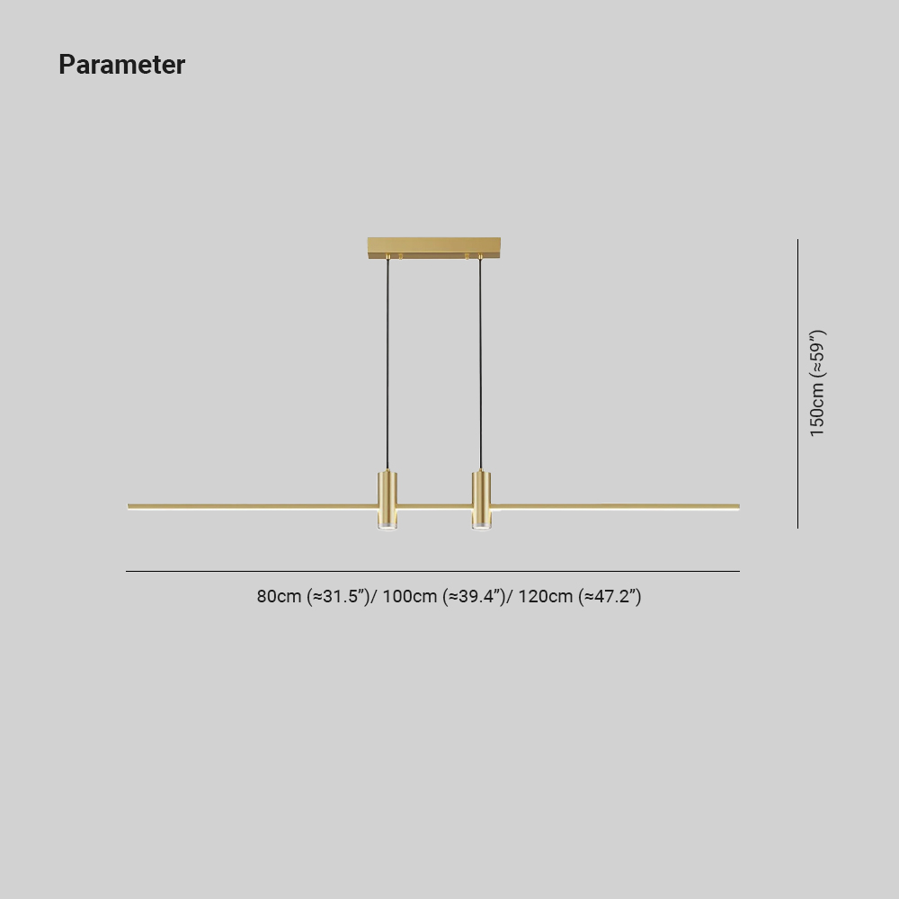 - La combinación de un cuerpo de luz de oro cepillado y cables de suspensión negros ofrece un sorprendente contraste visual, realzando el diseño general con una estética moderna y lujosa adecuada para interiores refinados.